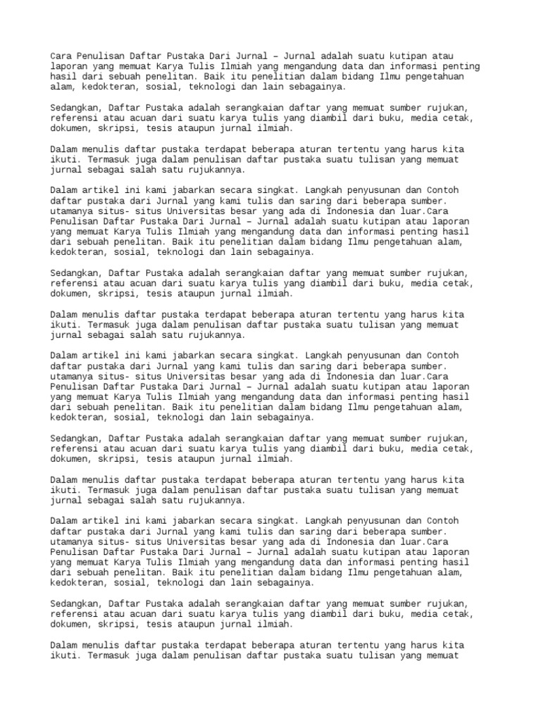 Contoh Penulisan Dapus from imgv2-2-f.scribdassets.com 3 mengapa daftar pustaka itu penting? 11 tahun 2008 yang mengatur tentang informasi serta transaksi elektronik. Media pembelajaran peranannya sangat penting dalam mencapai tujuan pembelajaran. Daftar pustaka memang menjadi bagian yang vital dalam skripsi atau mungkin tugas sekolah dan kampus. Melalui daftar pustaka yang disertakan pada akhir tulisan, para pembaca dapat melihat sumber aslinya. Pada penulisan suatu karya ilmiah, penulisan harus menyajikan informasi yang benar dalam daftar pustaka. Pengertian daftar pustaka pengertian daftar pustaka adalah tulisan yang tersusun di akhir sebuah karya ilmiah yang berisi nama penulis, judul tulisan, penerbit, identitas penerbit dan tahun terbit sebagai sumber atau … Maksud/tujuan sebagai ciri keilmiahan seorang penulis (tidak plagiasi), dan memudahkan mencari sumbersumber tulisan jika menulis hal.