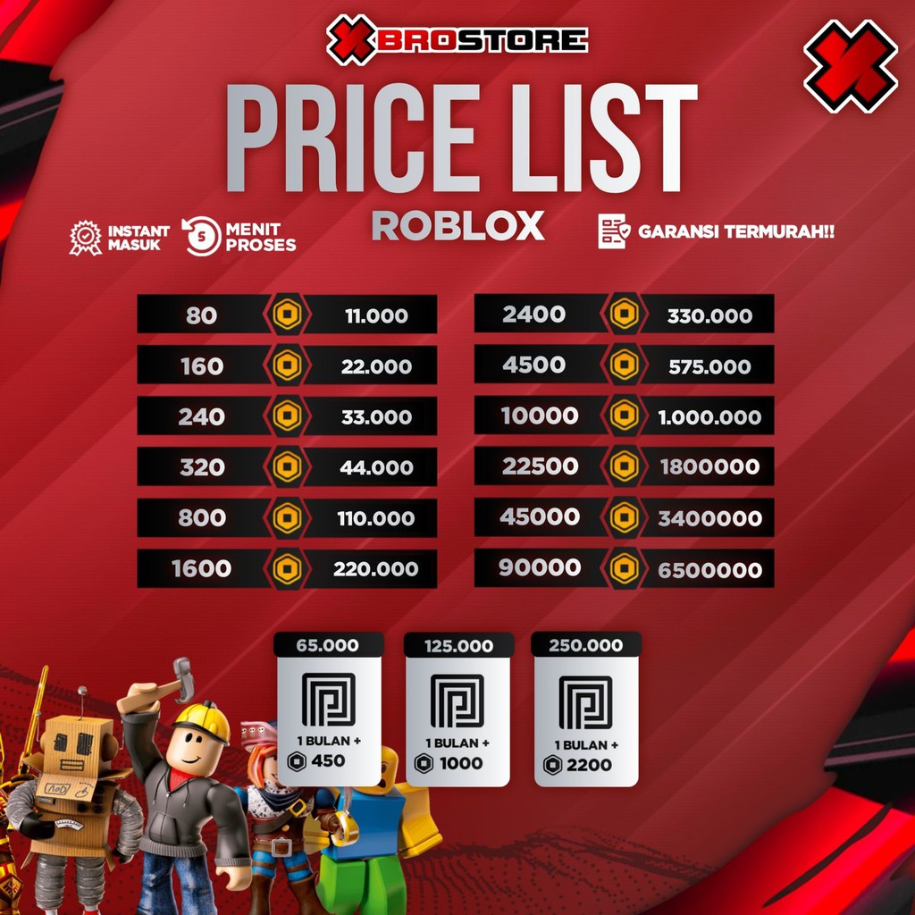Beli robux 500 3500 termurah se indonesia instant roblox.